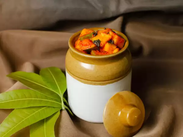 Pickles are an integral part of the Indian kitchen and it is the go to option for all your meals. A meal is not complete without pickles. Pickles are made from dried vegetables - mostly mango, lime, garlic in a mixture with oil, salt, mustard and chillies. The taste of pickles is a mix of sourness and spice which creates a different taste when consumed and they are often stored in big glass jars.